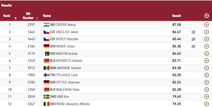 Neeraj with a very average throw, well below his best today but still leads. Czech Vesely is at second, and is improving. Nadeem with a 84.62 throw in third attempt, his best in final.